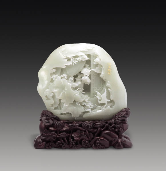 在玉器“山子雕”这个大门类中,把花鸟作为主题的作品应该为数不多,作者把吉祥的寓意和花鸟结合起来,可谓别具一格。作品中圆形的窗户为堂屋,袅袅的仙气和生动的荷花,寓意为“和气”。作品选用新疆和田上等仔玉,…